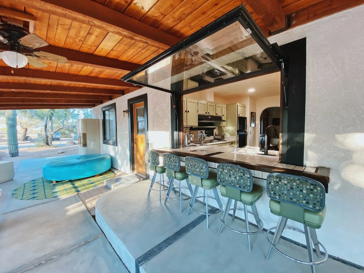 70’s-80’s influenced short term rental. Full house remodel, custom OSB exterior furniture, blockwork, outdoor shower and recording studio framing.